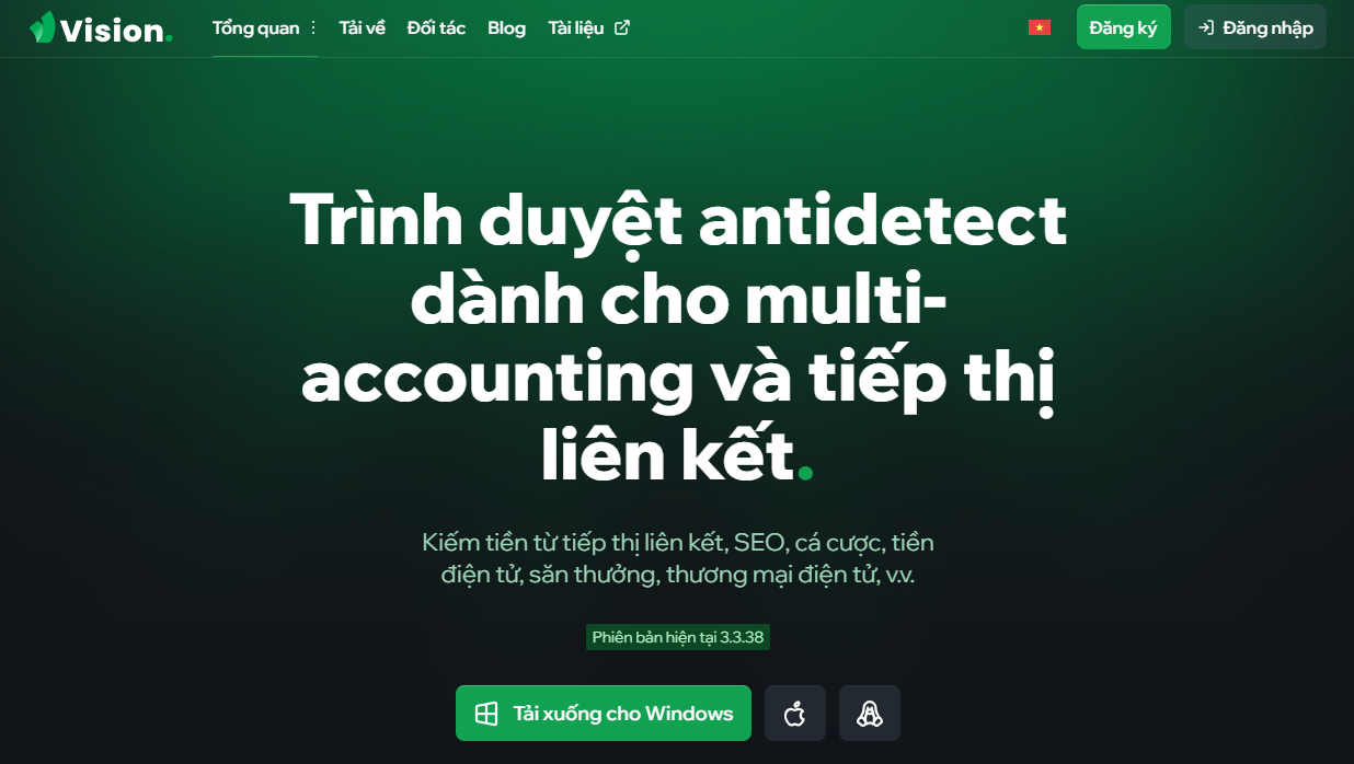 Vision Browser là một trong những phần mềm Antidetect Browser an toàn, hiệu quả, cho phép người dùng tạo nhiều profile trình duyệt gắn với proxy có IP riêng, có thông tin thiết bị riêng biệt để tránh các hành động trùng lặp bị phát hiện.