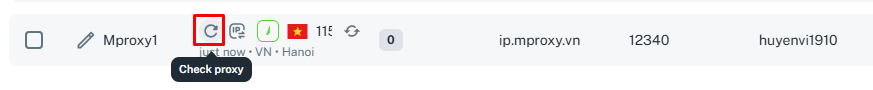 - Bấm biểu tượng xoay tròn để kiểm tra hoạt động của proxy
