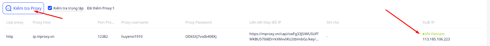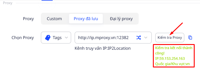 - Bấm Kiểm tra Proxy để xem proxy có hoạt động không?
