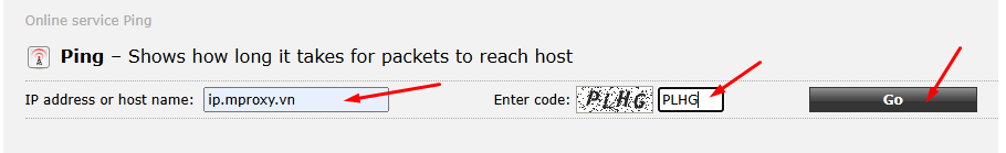 Bước 2: Nhập thông tin IP/server dạng chữ và mã xác thực trên web, bấm Go