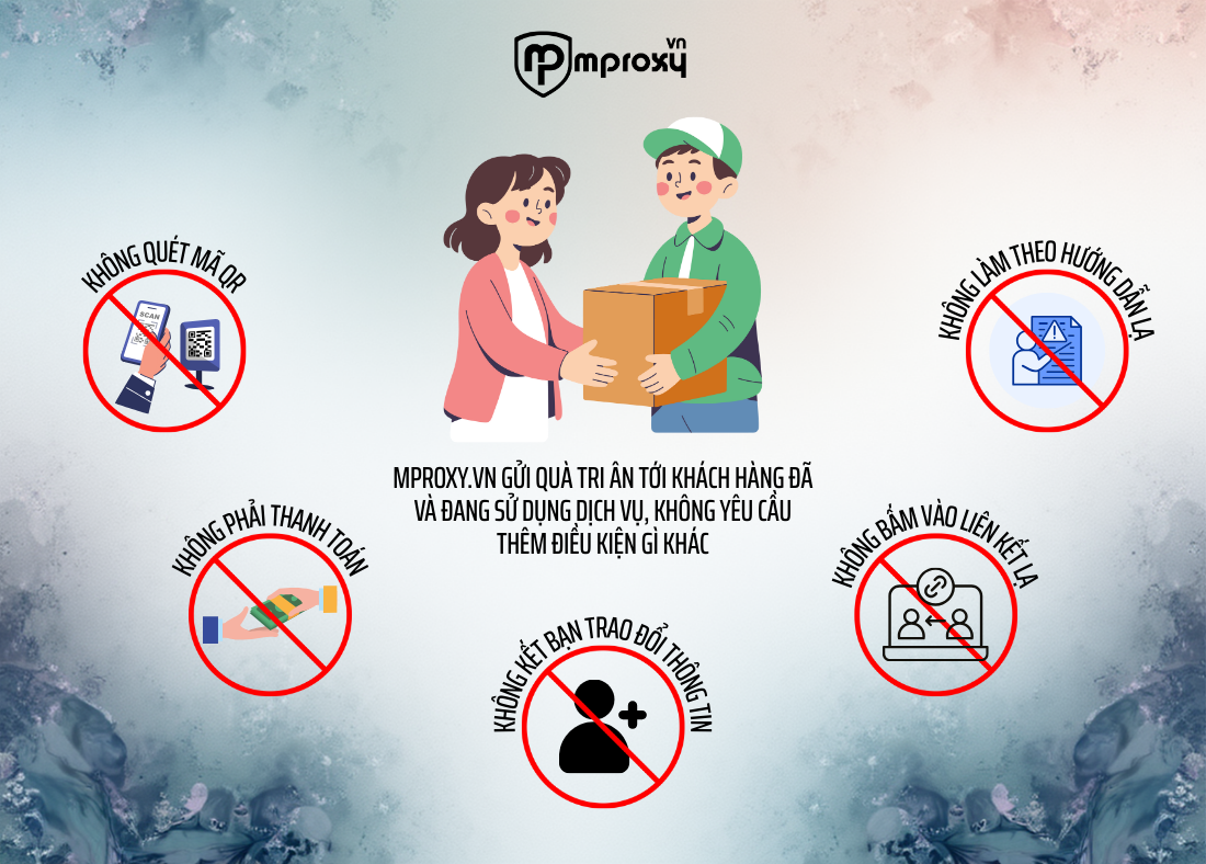 Nhằm tri ân những người dùng đã tin tưởng và đồng hành cùng MProxy trong suốt thời gian qua, chúng tôi triển khai chương trình tặng 100 phần quà ngẫu nhiên dành cho các tài khoản đủ điều kiện.